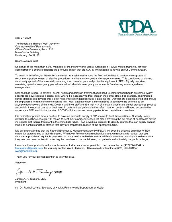 On behalf of the more than 5,000 members of the Pennsylvania Dental Association ( PDA ) I wish to thank you for your Administration ’ s efforts to mitigate the profound impact that the COVID-19 pandemic is having on our Commonwealth .