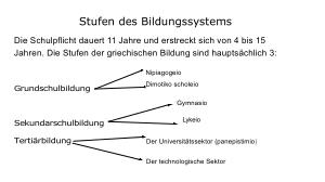 Die Schulpflicht dauert 11 Jahre und erstreckt sich von 4 bis 15 Jahren . Die Stufen der griechischen Bildung sind hauptsächlich 3 :