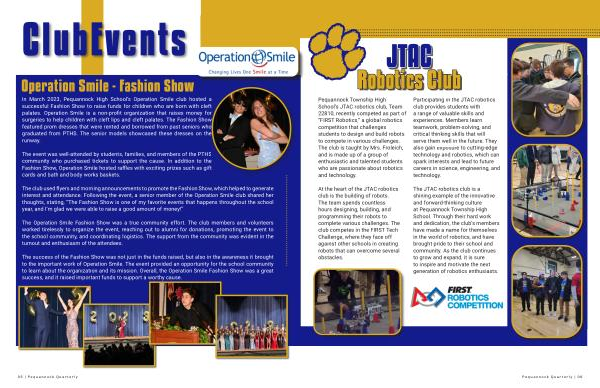 In March 2023 , Pequannock High School ’ s Operation Smile club hosted a successful Fashion Show to raise funds for children who are born with cleft palates . Operation Smile is a non-profit organization that raises money for surgeries to help children with cleft lips and cleft palates . The Fashion Show featured prom dresses that were rented and borrowed from past seniors who graduated from PTHS . The senior models showcased these dresses on the runway .