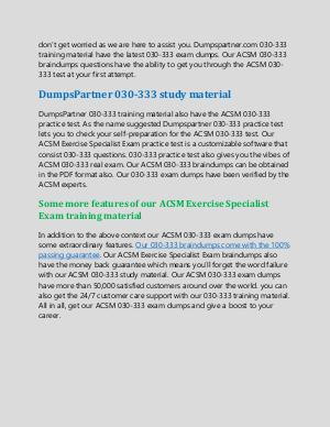 DumpsPartner 030-333 training material also have the ACSM 030-333