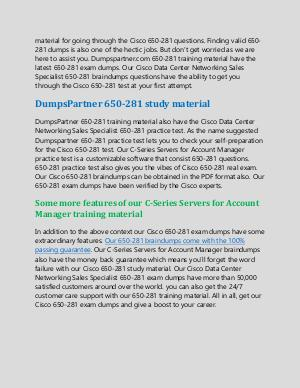 DumpsPartner 650-281 training material also have the Cisco Data Center