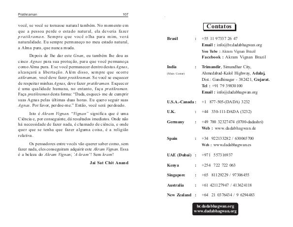Depois de lhe dar este Gnan, eu também lhe dou as cinco Agnas para sua proteção, para que você permaneça como Alma pura. E se você permanecer dentro destas Agnas, alcançará a libertação. Além disso, sempre que ocorre atikraman, você deve fazer pratikraman. Se você se esquecer de respeitar minhas Agnas, deve fazer pratikraman. Esquecer é uma qualidade humana, no entanto, faça pratikraman. Faça pratikraman desta forma:“ Dada, esqueci- me de cumprir suas Agnas pelas últimas duas horas. Eu quero seguir suas Agnas. Por favor, perdoe-me.” Então, você será perdoado.