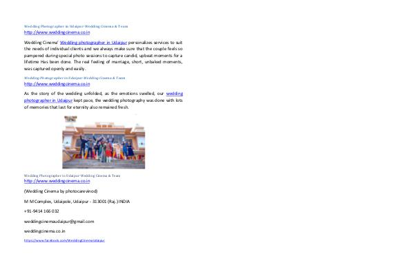 Wedding Cinema’ Wedding photographer in Udaipur personalizes services to suit