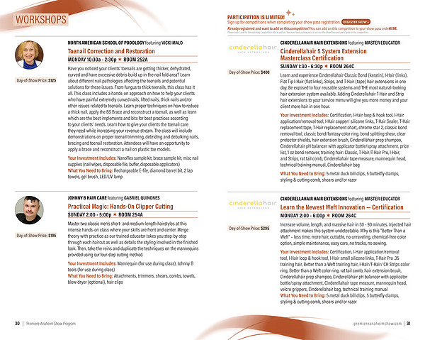 Your Investment Includes : Certification , I-Hair application / removal tool , I-Hair loop & hook tool , I-Hair small silicone links , T-Hair Pro . 35 training hair , Better than a Weft training hair , I-Hair / T-Hair / CH Strips color ring , Better than a Weft color ring , rat tail comb , hair extension brush , Cinderellahair prep shampoo , Cinderellahair pH balancer with applicator bottle / spray attachment , Cinderellahair tape measure , mannequin head , velcro grippers , Cinderellahair bag , technical training manual What You Need to Bring : 5 metal duck bill clips , 5 butterfly clamps , styling & cutting comb , shears and / or razor