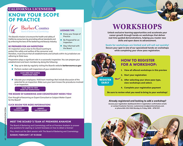 The Board of Barbering and Cosmetology will be at Premiere Anaheim to answer any questions for aspiring or current licensees on how to obtain a license!