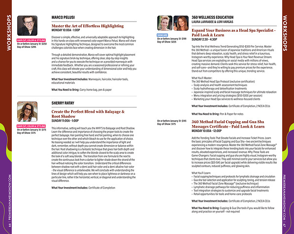 WORKSHOPS PREMIEREANAHEIMSHOW. COM | 67