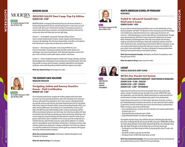 WORKSHOPS PREMIEREANAHEIMSHOW. COM | 69