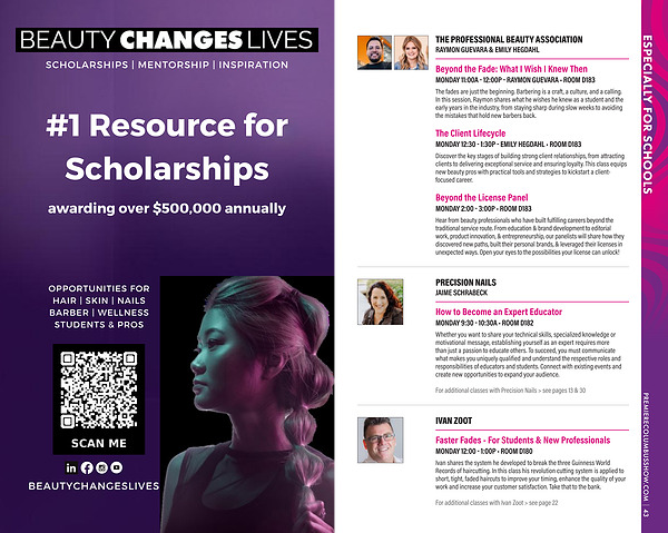 Hear from beauty professionals who have built fulfilling careers beyond the traditional service route. From education & brand development to editorial work, product innovation, & entrepreneurship, our panelists will share how they discovered new paths, built their personal brands, & leveraged their licenses in unexpected ways. Open your eyes to the possibilities your license can unlock!