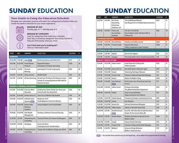 9:30 AM 10:30 AM Cocco Hair Pro Get exited about cutting hair again D281 24 9:30 AM 10:30 AM Farouk Texturizing Technique Takeover C170 21 9:30 AM 10:30 AM Product Club Fabulous Foiling and Beautiful Balayage C161 18 9:30 AM 10:30 AM Solano Master the Modern Shag D282 20