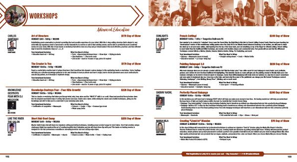 Reach a comfortable creative level of unique blend work that transitions into dynamic custom designs in this captivating hands on workshop . Carlos Santiago will bring you collective knowledge gathered on his own formulas to how you where and how to begin , how to decide placement and a more methodical to execute any pattern , be it freestyle or duplicate design .