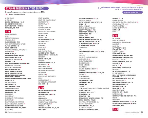 New brands added daily ! View an up-to-date list of exhibiting brands on our digital planner or mobile app .