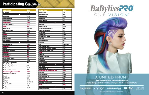 Corrective Cosmetics 422 Curlisto Systems Beauty Boutique Hair Salon Inc. 954 Beauty Love 1356 Beauty Pros Salon Services 723 Benedict Enterprises Incorporated 1513 BFF PRO Miracle Body Buffer 1603 Bio Ionic 1114 BLACKPANTS 201 Blinc, Inc. 1525 Bling Bling 1357 & 1363 Blondis New York 1144 Blowpro 407 Bodipure, Inc. 1457