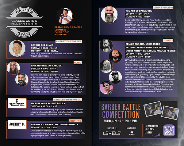 L3VEL3 is the epitome of excellence in barbering and grooming education , offering classes taught by globally renowned artists . They are known for their innovation and expertise , providing students with unparalleled insights on social content and cutting- edge techniques . Emphasizing education and sharing everything from precision cutting to intricate designs , grooming styles , and product knowledge . With a commitment to accessibility , the L3VEL3 team makes connections and collaborations among like-minded individuals , further enriching the learning experience . We invite you to join our diverse Global Artist , Education , and content creation team from L3VEL3 , where individuals will not only learn to elevate their skills but also immerse themselves in the global network of L3VEL3 .