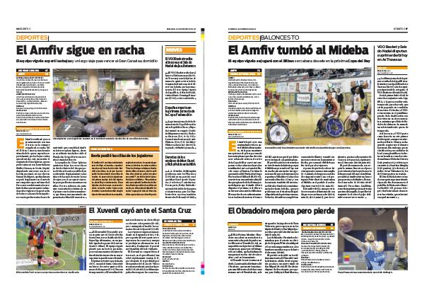 Amfiv: Abdi Jama( 10), Shelley Cronau( 1), Agustín Alejos( 15), Salvador Zavala( 14), Lorenzo Envo( 22) – cinco inicial –, Bernabé Costas( 2), Julio Vilas(-), Manu Lorenzo( 6) y Samuel Rodríguez( 2). Mideba Extremadura: Tinín( 2), Lilja( 5), Padro Bartolo( 6), José Cano( 16), Joakim Lindblom( 4)-cinco inicial –, Romero( 2). Parciales: 15-10, 29-22( descanso), 55-31 y 72-35. Árbitros: González, Izquierdo y Ranera. Eliminaron por cinco faltas personales al jugador visitante Joakim Lindblom( min. 26). Incidencias: Partido de la undécima jornada de Liga de División de Honor de baloncesto en silla de ruedas, disputado en el Pabellón Pablo Beiro de Bouzas.