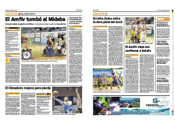 Amfiv: Abdi Jama( 10), Shelley Cronau( 1), Agustín Alejos( 15), Salvador Zavala( 14), Lorenzo Envo( 22) – cinco inicial –, Bernabé Costas( 2), Julio Vilas(-), Manu Lorenzo( 6) y Samuel Rodríguez( 2). Mideba Extremadura: Tinín( 2), Lilja( 5), Padro Bartolo( 6), José Cano( 16), Joakim Lindblom( 4)-cinco inicial –, Romero( 2). Parciales: 15-10, 29-22( descanso), 55-31 y 72-35. Árbitros: González, Izquierdo y Ranera. Eliminaron por cinco faltas personales al jugador visitante Joakim Lindblom( min. 26). Incidencias: Partido de la undécima jornada de Liga de División de Honor de baloncesto en silla de ruedas, disputado en el Pabellón Pablo Beiro de Bouzas.