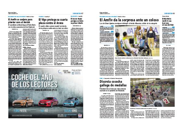 El Amfiv firmó la sorpresa de la jornada en la División de Honor al imponerse al Amiab Albacete, colíder de la categoría y serio aspirante a pelear esta campaña por todos los títulos con el todopoderoso Ilunion. Los vigueses realizaron una muy buena defensa sobre los dos jugadores que más daño habían hecho al Amfiv en la primera vuelta, los británicos Kyle Marsh y Lee Manning. Además, supieron jugar muy bien sus bazas en ataque para conseguir una importantísima victoria que refuerza su moral de cara al choque aplazado que disputarán el próximo sábado en Bilbao y en el que intentarán conseguir un triunfo para ser cabeza de serie en la Copa del Rey.