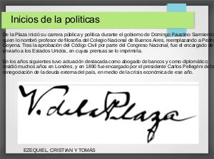De la Plaza inició su carrera pública y política durante el gobierno de Domingo Faustino Sarmiento,