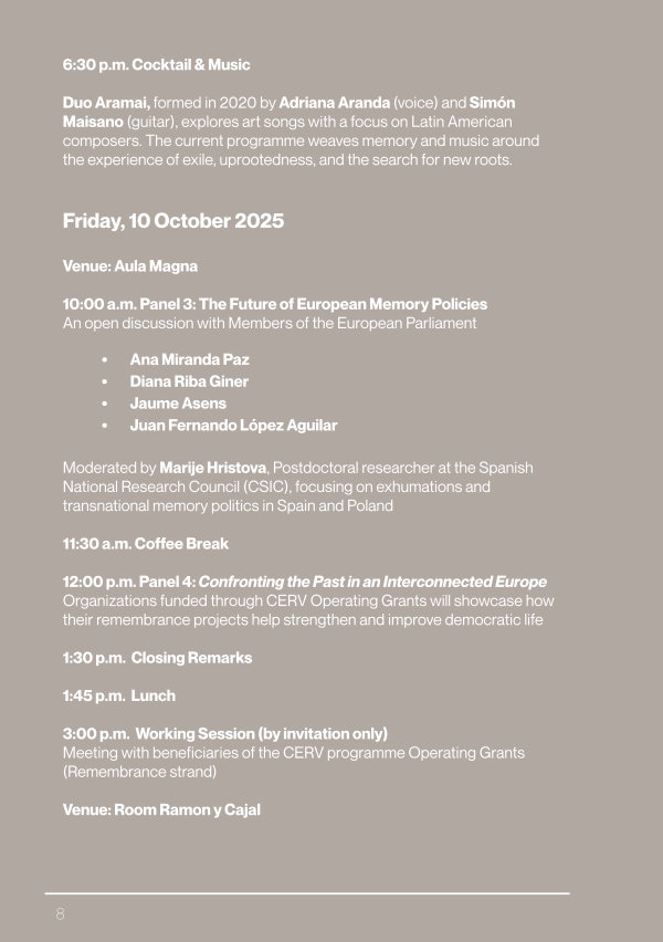 10:00 a. m. Panel 3: The Future of European Memory Policies An open discussion with Members of the European Parliament