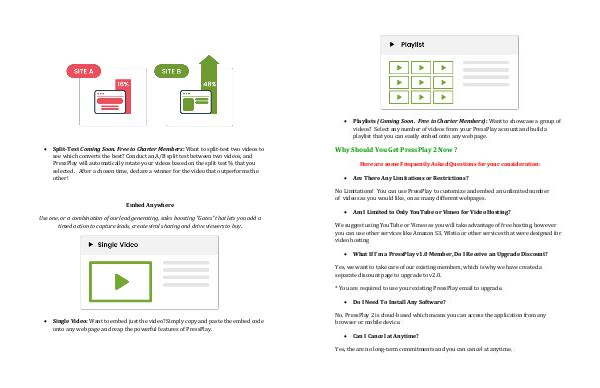 Split-Test Coming Soon. Free to Charter Members: Want to split-test two videos to see which converts the best? Conduct an A / B split test between two videos, and PressPlay will automatically rotate your videos based on the split test % that you selected. After a chosen time, declare a winner for the video that outperforms the other!