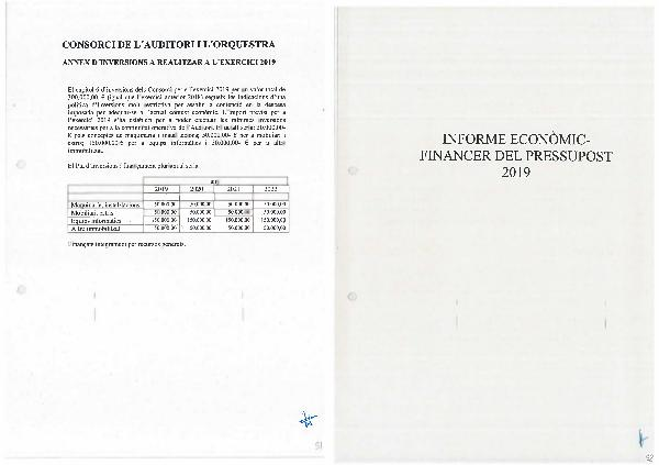 Pressupost 2019 Consorci de L'Auditori i l'Orquestra Pressupost 2019 Consorci de L'Auditori i l'Orquest | Page 55
