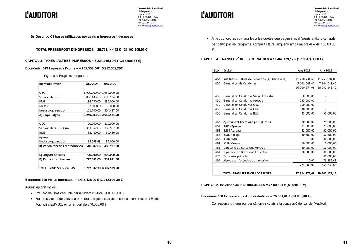 Ingressos Propis corresponen : Ingressos Propis Any 2023 Any 2024