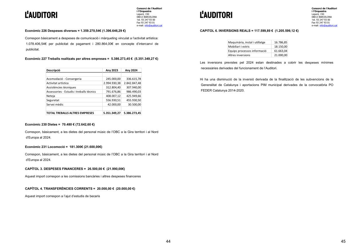 Les inversions previstes pel 2024 estan destinades a cobrir les despeses mínimes necessàries derivades del funcionament de l ’ Auditori .