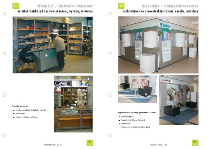 2.1 INTERIÉRY / KOMER?NÍ PROSTORY architektonické a konstruk?ní ?ešení, výroba, instalace Použitý materiál: výroba atypického obchodního nábytku mobilní pult vitríny s vnit?ním osv?tlením 2.1 11
