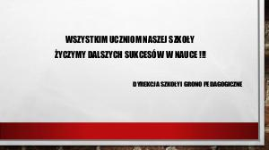 WSZYSTKIM UCZNIOM NASZEJ SZKOŁY ŻYCZYMY DALSZYCH SUKCESÓW W NAUCE !!! DYREKCJA SZKOŁY I GRONO PEDAGOGICZNE