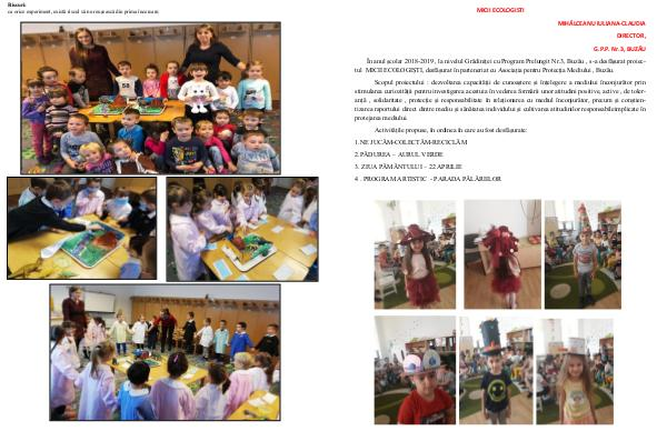 tul MICII ECOLOGIȘTI, desfășurat în parteneriat cu Asociația pentru Protecția Mediului , Buzău.