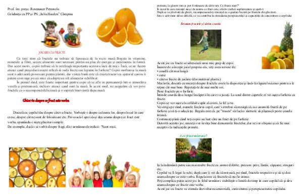 Datorită acestui joc, micuţii vor învăţa bine denumirile fructelor, dar se vor obişnui şi să fie mai