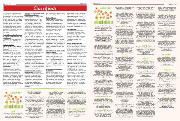 COMMUNITY EVENTS April 2 Corrales Growers’ Winter Market, 4001 Corrales Road, Corrales, 11a. m.-1 p. m. Shop for seasonal produce while enjoying local musicians,