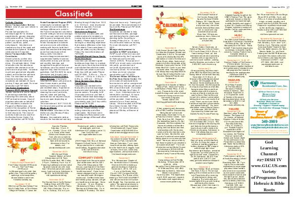 November 17 Salud y Sabor: Honduras, at National Hispanic Cultural Center, 1701 Fourth Street SW, 5:30 p. m. A free evening of food, art, and entertainment aimed at providing families with an opportunity to connect around nutrition, cooking, healthy lifestyles, and culture. Call 246-2261; visit nhccnm. org.