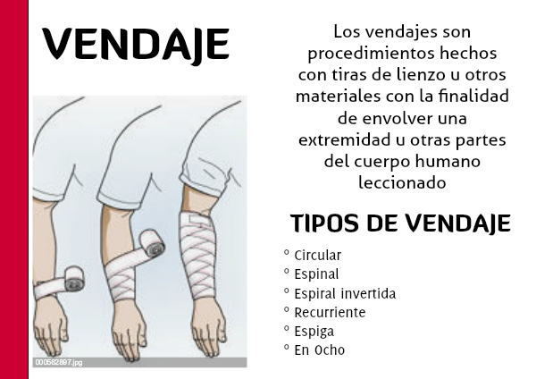 Los vendajes son procedimientos hechos con tiras de lienzo u otros materiales con la finalidad de envolver una extremidad u otras partes del cuerpo humano leccionado