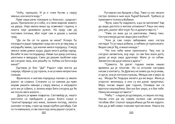 Прве наше речи показале су блискост , сродност душа . Причала ми је о себи , и о свом мирном животу на двору . Није имала више од осамнаест година , и ништа није доживела ружно . На крају сам јој поставио питање , због којег сам и дошао у њихов град .