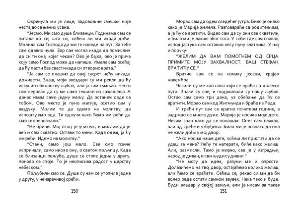 ’’ Ја сам се плашио да овај сусрет нећу никада доживети . Знаш , моји звездари су ми рекли да ћу искусити божанску љубав , али ја сам сумњао . Често сам веровао да су ме само тешили из сажаљења . А данас имам само једну жељу . Да останем овде са тобом . Ово место је пуно магије , осетио сам у ваздуху . Молим те да одемо на молитву , да испоштујемо оца . Ти одлучи како ћемо им рећи да смо се препознали .“