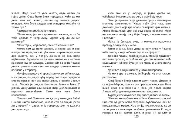 Док ово пишем , година је 1412 . Мени је тридесет пет лета прошло , а осећам као да сам поживео већ седамдесет . Много бура је иза мене , и много посла ме чека . Доживео сам још нешто у шта сам веровао . На моја врата закуцао је Ђурађ . Не онај стари , ратоборни .