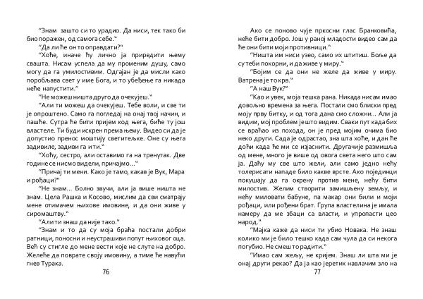 ’’ Не знам ... Болно звучи , али ја више ништа не знам . Цела Рашка и Косово , мислим да сви сматрају мене отимачем њихове имовине , и да они живе у сиромаштву .“ ’’ Али ти знаш да није тако .“ ’’ Знам и то да су моја браћа постали добри ратници , поносни и неустрашиви попут њиховог оца . Већ су стигле до мене вести које не слуте на добро . Желеће да поврате своју имовину , а тиме ће навући гнев Турака .