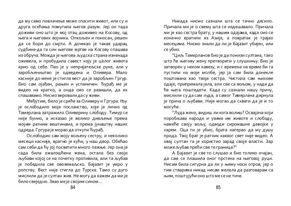 Ослободио сам моју вољену сестру , и неколико месеци касније , вратио је кући , у наш двор . Обећао сам себи да ћу јој посветити много пажње . Јер она је сада била ожалошћена жена , остала без своје љубави којој се на почетку противила , али та љубав је победила све овоземаљско . Бајазит је умро у ропству . Вест није стигла до Турске . Тамо су дуго мислили да је султан жив . Не могу да кажем да ми је било свеједно . Звао ме је својим сином ...