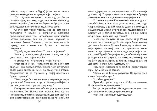 ’’ Стоко неразумна ! Ко се овде бори за народ , а ко за себе ?! Ви сте ти што сте укаљали образ само ради својих поседа , а ја сам продао душу Бајазиту да у земљи влада мир ! Знате то добро , гадови погани ! И Бајазит ми је постао пријатељ , већи од вас ! Бар је искрен био , никада ме није слагао !