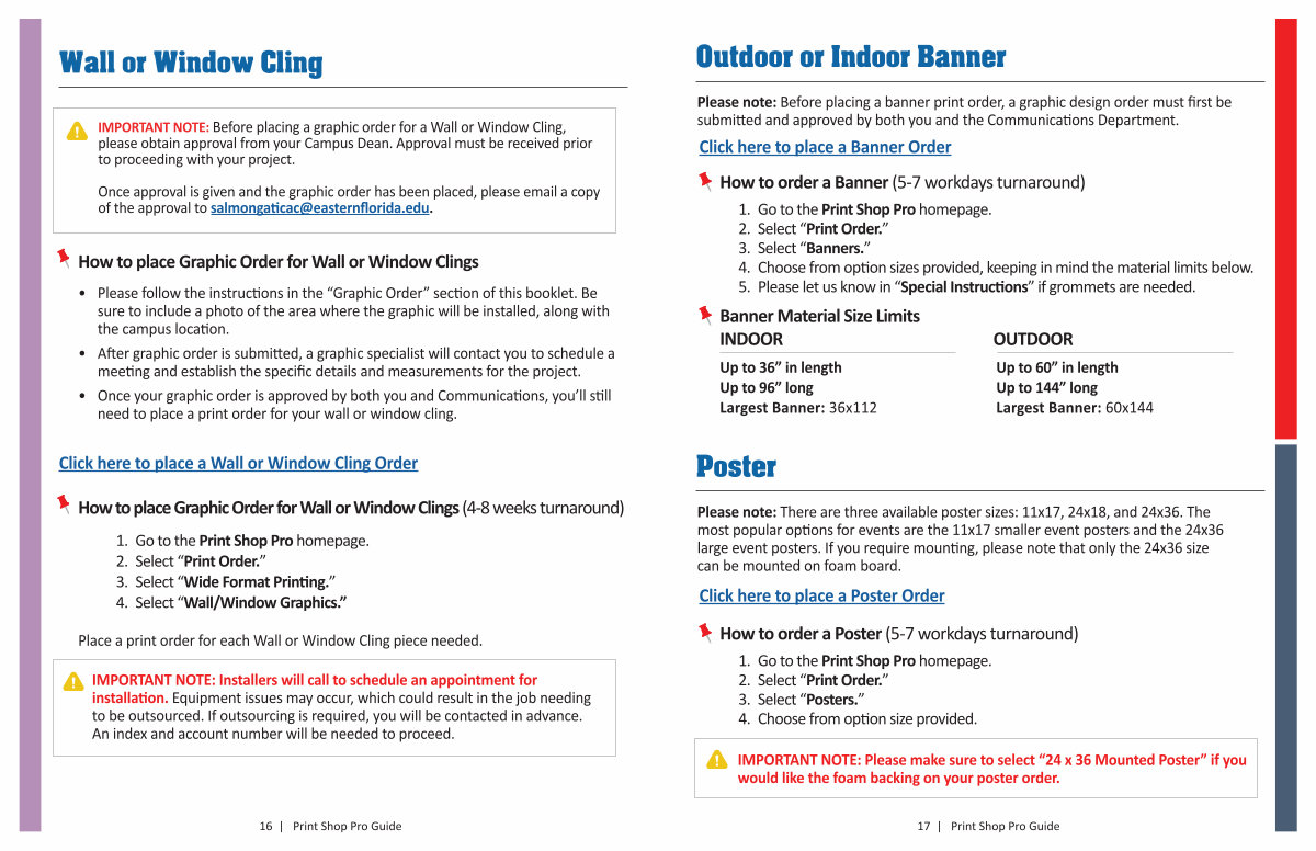 IMPORTANT NOTE: Before placing a graphic order for a Wall or Window Cling, please obtain approval from your Campus Dean. Approval must be received prior to proceeding with your project.