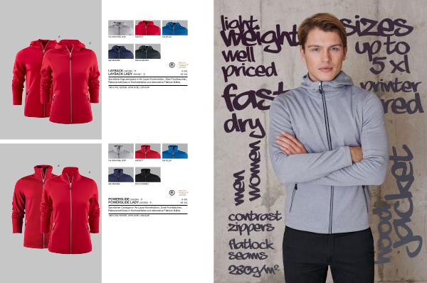 Sportliche Kapuzenjacke in Air Layer Konstruktion . Zwei Fronttaschen , Reissverschlüsse in Kontrastfarbe und dekorative Flatlock Nähte .