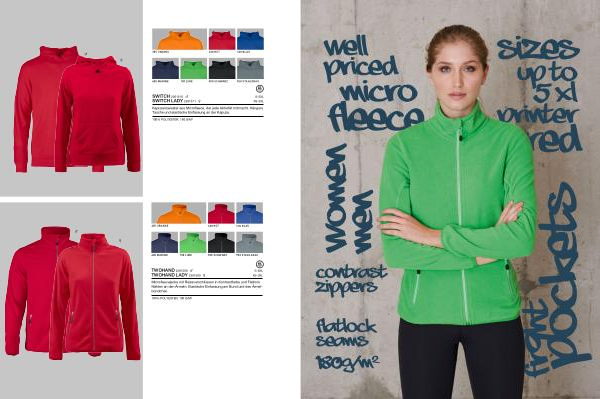 Microfleecejacke mit Reissverschlüssen in Kontrastfarbe und Flatlock Nähten an den Ärmeln . Elastische Einfassung am Bund und den Ärmelbündchen .