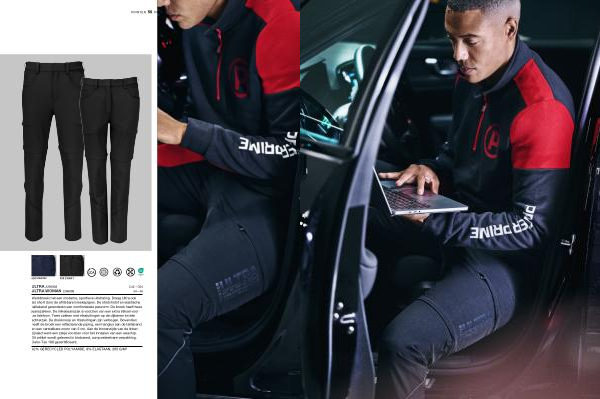 Werkbroek met een moderne, sportieve uitstraling. Draag Ultra ook als short door de afritsbare broekspijpen. De stretchstof en elastische tailleband garanderen een comfortabele pasvorm. De broek heeft twee jeanszakken. De linkerjeanszak is voorzien van een extra stiksel voor uw telefoon. Twee zakken met ritssluitingen op de dijbenen en één achterzak. De drukknoop en ritssluitingen zijn verbogen. Bovendien heeft de broek een reflecterende piping, een hanglus aan de tailleband en een verstelbare zoom van 5 cm. Aan de binnenzijde van de linkerzijnaad werd een zakje voorzien voor het innaaien van een waschip. Dit artikel wordt geleverd in biobased, composteerbare verpakking. Oeko-Tex 100 gecertificeerd.
