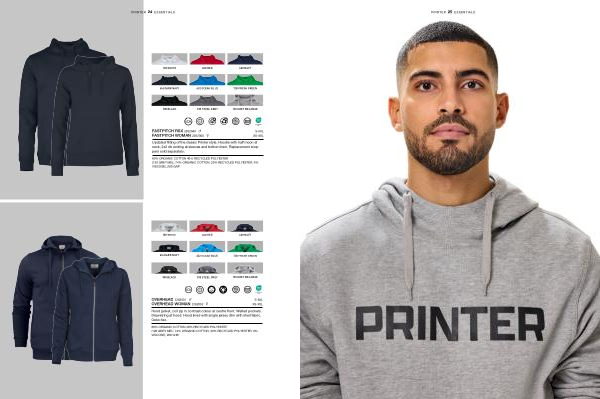 Updated fitting of the classic Printer style. Hoodie with half moon at neck, 2x2 rib ending at sleeves and bottom hem. Replacement stoppers sold separately.