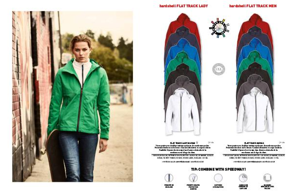FLAT TRACK LADY 2261043 Veste sportive avec doublure intérieure polyester, de nombreuses poches. Fermetures bicolores sur le devant. Coutures décoratives et coupe moderne. Possibilité d’ ajouter des tires-zips dans d’ autres coloris afin de les coordonner avec le logo du client.