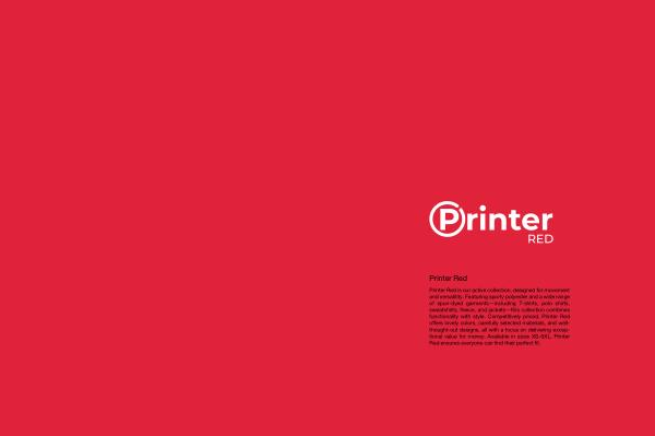 Printer Red is our active collection , designed for movement and versatility . Featuring sporty polyester and a wide range of spun-dyed garments — including T-shirts , polo shirts , sweatshirts , fleece , and jackets — this collection combines functionality with style . Competitively priced , Printer Red offers lovely colors , carefully selected materials , and wellthought-out designs , all with a focus on delivering exceptional value for money . Available in sizes XS – 5XL , Printer Red ensures everyone can find their perfect fit .