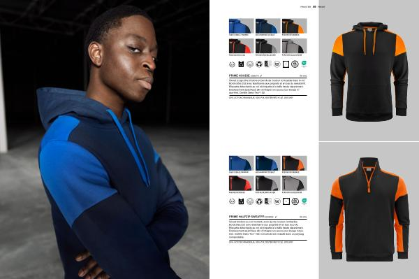 Sweat à capuche bicolore et bande de couleur contrastée dans le col . Bord-côtes 2x2 avec élasthanne aux poignets et en bas du sweatshirt . Étiquette détachable au col et étiquette à la taille tissée séparément . Emplacement spécifique afin d ’ intégrer une puce pour lavage indus-triel . Certifié Oeko-Tex ® 100 .