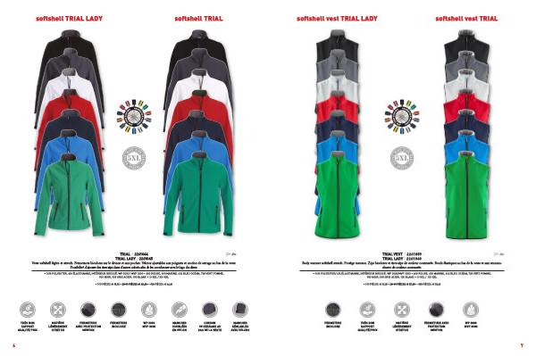 • 96% POLYESTER/ 4% ÉLASTHANNE, INTÉRIEUR BROSSÉ. WP 3000/MVP 3000 • 400 ROUGE, 600 MARINE, 632 BLEU OCÉAN, 728 VERT POMME,