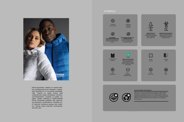 Printer Essentials – mallisto on vastaus kaikkiin profiilipukeutumisen tarpeisiin. Laadukkaat tekstiilimme on suunniteltu brändättäviksi. Tarjolla on useita kokoja sekä vaihtoehtoisia värejä vetoketjujen vetimiksi, nyöristoppereiksi, nyöreiksi ja paidan na- peiksi. Upeilla, raik kailla ja käytännöllisillä Printer Essentials – vaatteilla teet vaikutuksen jokaisena vuodenaikana. Tekstiilien värit toistuvat tuotteissa samana läpi malliston. Kokoja löytyy pienestä suurempaan, aina 5XL asti.