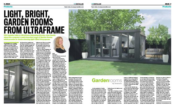 “ April 2021 is an exciting month for the team at Ultraframe as it ’ s the month that our new range of Garden Rooms are launched and available to buy . People from every department across the business have worked hard to launch our Garden Rooms as early in 2021 as we could , in response to the current demand for them . While Garden |